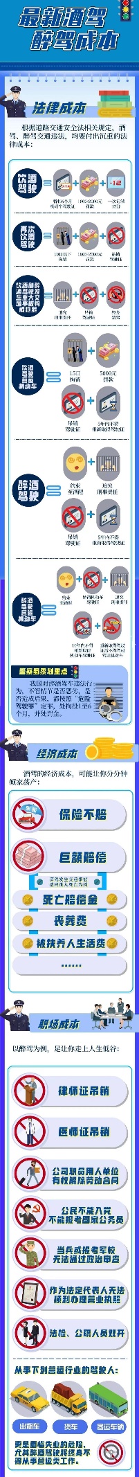 為進一步嚴明紀律規(guī)矩,督促引導(dǎo)公司廣大員工特別是黨員干部帶頭遵紀守法,堅決遏制酒駕醉駕違紀違法行為的發(fā)生,公司紀委現(xiàn)將酒駕醉駕成本清單予以整理,供大家警醒學(xué)習。