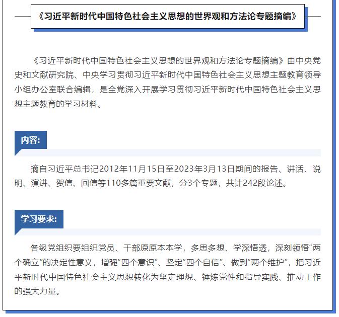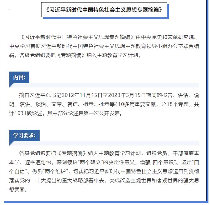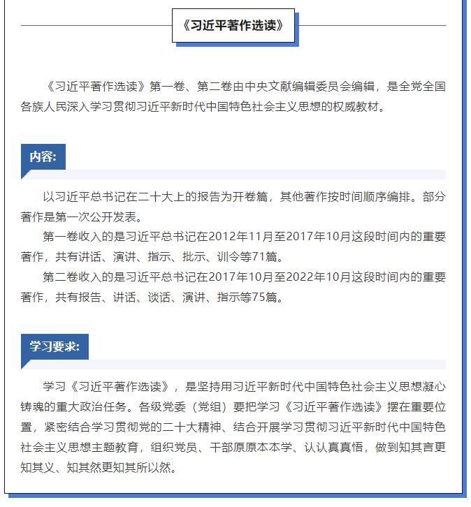 那么,如何加強(qiáng)黨的創(chuàng)新理論武裝?廣大黨員干部要認(rèn)真讀原著、學(xué)原文、悟原理,深刻領(lǐng)悟習(xí)近平新時(shí)代中國特色社會主義思想的核心要義、精神實(shí)質(zhì)、豐富內(nèi)涵和實(shí)踐要求。深入開展主題教育,這幾種書是重要學(xué)習(xí)材料。
